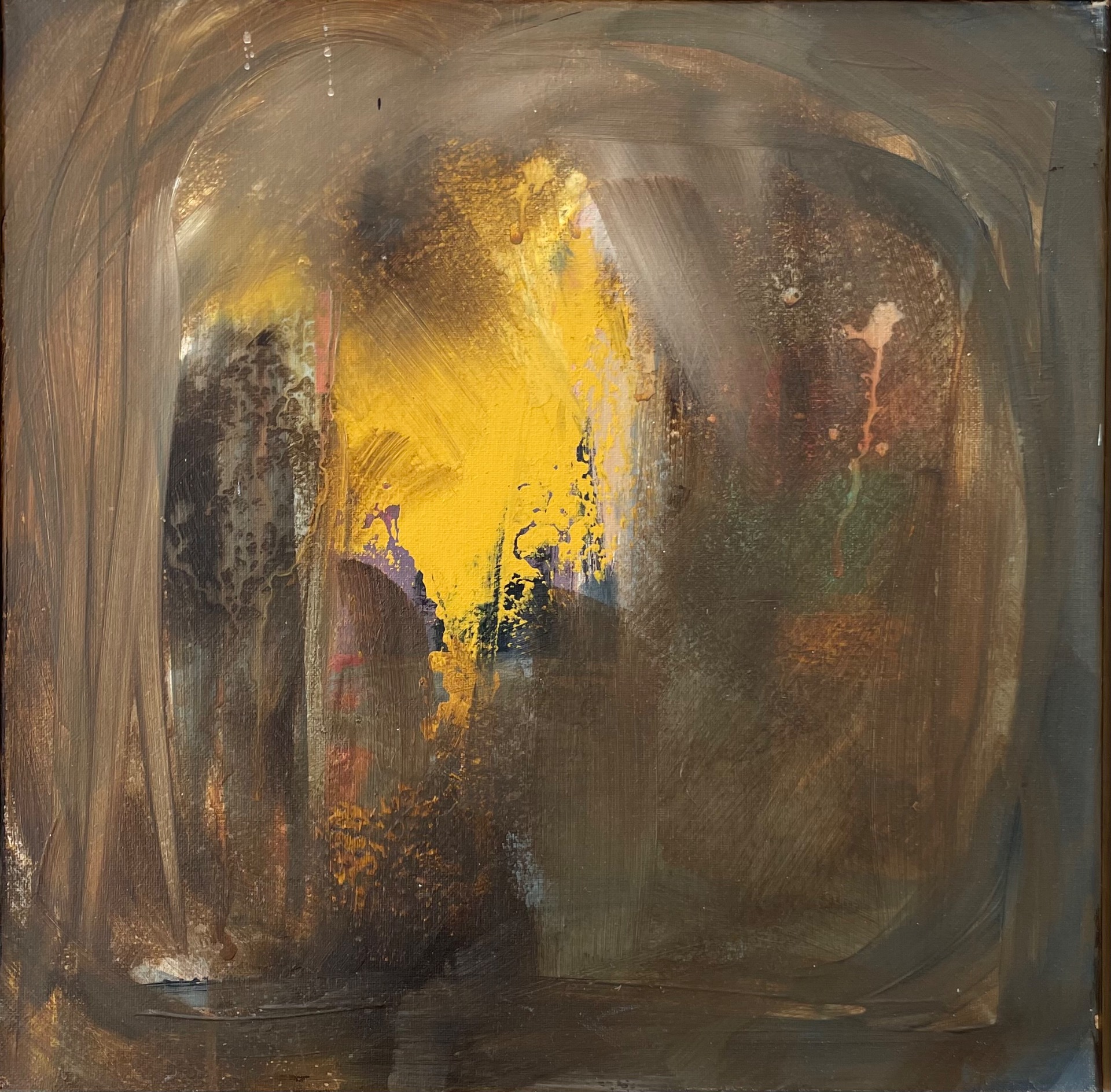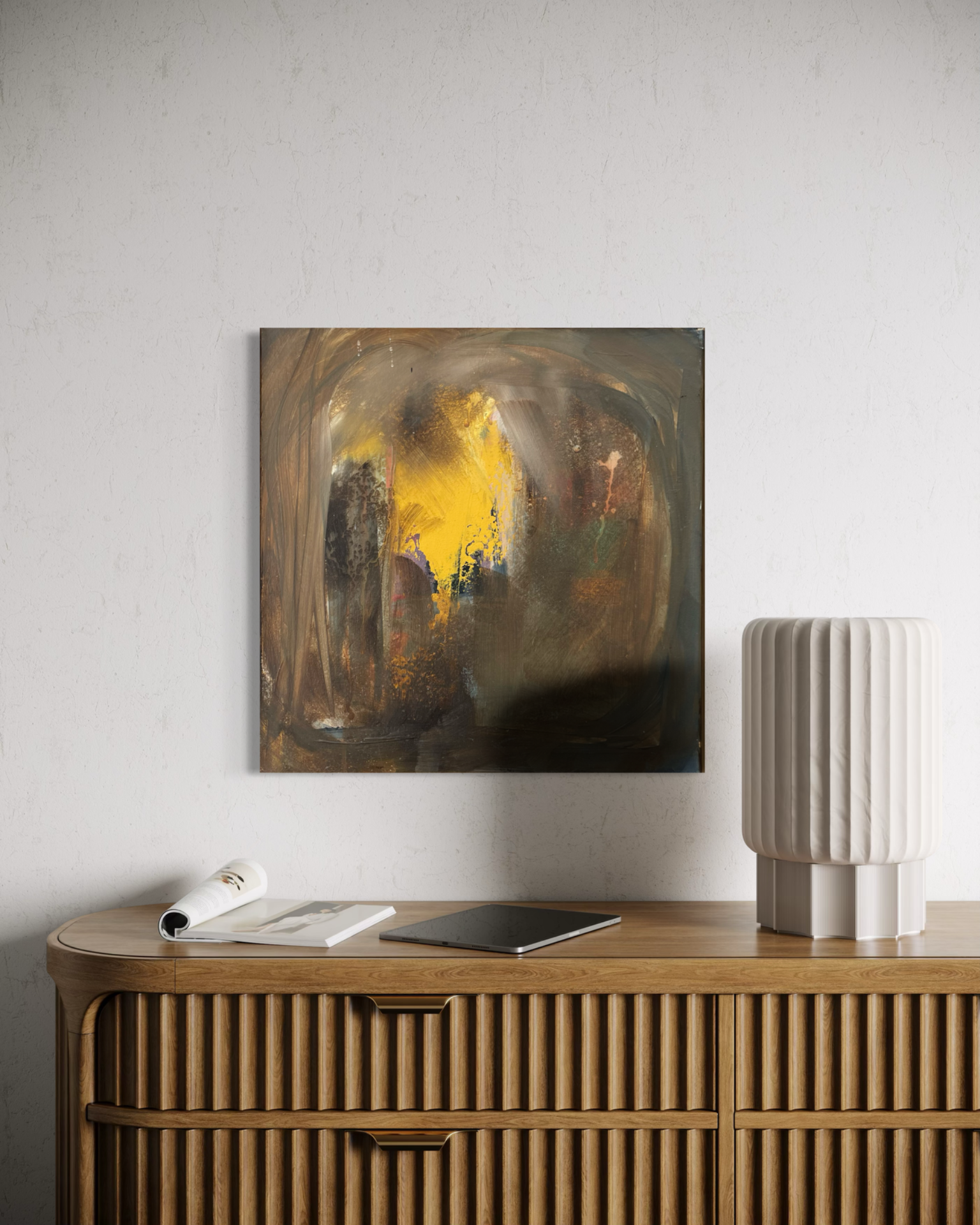 Abstrakt maleri i okker og brune toner
